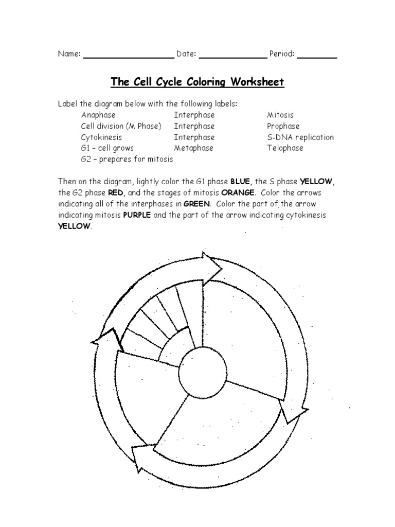 Some of the worksheet s below are Cell Cycle Coloring Worksheet s with Answer Key, label the diagram below with the given labels. Then on the diagram, lightly color the G1 phase BLUE, the S phase YELLOW, the G2 phase RED, and the stages of mitosis ORANGE. Basic Instructions.