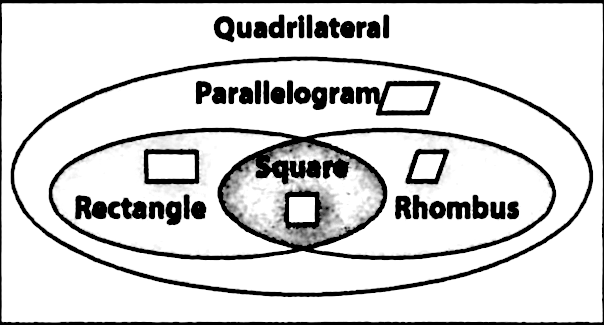 Venn Diagrams: Application on Sets, Operations, Videos, Solved... A Venn diagram is a diagrammatic representation of ALL the possible relationships between different sets of a finite number of elements. Each individual set is represented mostly by a circle and enclosed within a quadrilateral (the quadrilateral represents the finiteness of the Venn diagram as... Quadrilateral: Formula, Types, Venn Diagram & Perimeter Quadrilateral: Students can learn what is quadrilateral, its types, formulas, properties, Venn Diagram, etc. Additionally, they can refer to solved examples. It is important to understand the concept of quadrilaterals for a thorough understanding of geometry. To help you with that, in this article, we will... English: Venn diagram of different types of convex quadrilaterals. File:Diagramme venn differents types quadrilateres.svg. From Wikimedia Commons, the free media repository. Jump to navigation Jump to search. Items portrayed in this file. depicts. quadrilateral. Venn diagram. Classifying Quadrilaterals using Venn Diagrams Quadrilaterals... How to Draw Venn Diagrams, use Venn diagrams to visualize intersections and unions of sets, as well as subsets and supersets, examples and step by Venn Diagrams, Unions, and Intersections How to use the Venn Diagram to represent set operations for example intersection, union and complement.